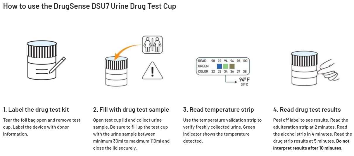 DrugSense DSU7 Urine Drug Test Cup - Pack of 25 Kits